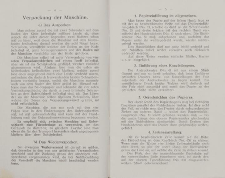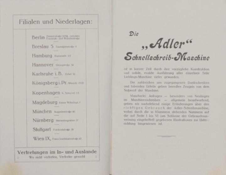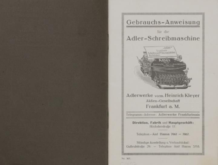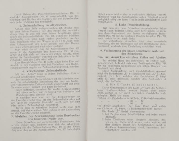 Gebrauchs-Anweisung für die Adler Schreibmaschine