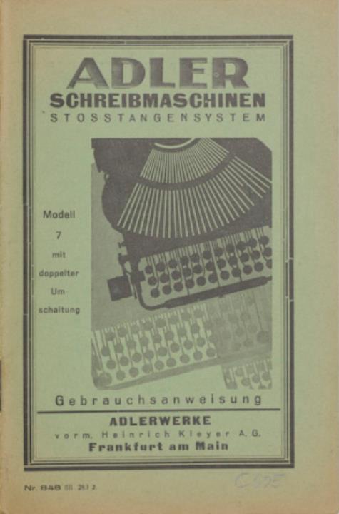 Bedienungsanleitung für die Schreibmaschine Adler 7 mit doppelter Umschaltung. Nr. 848 (III. 28.) 2