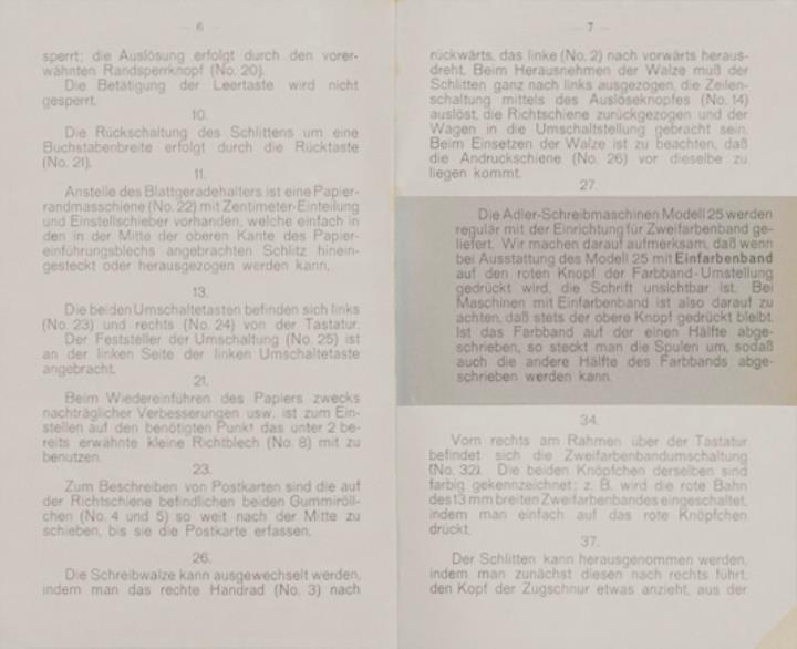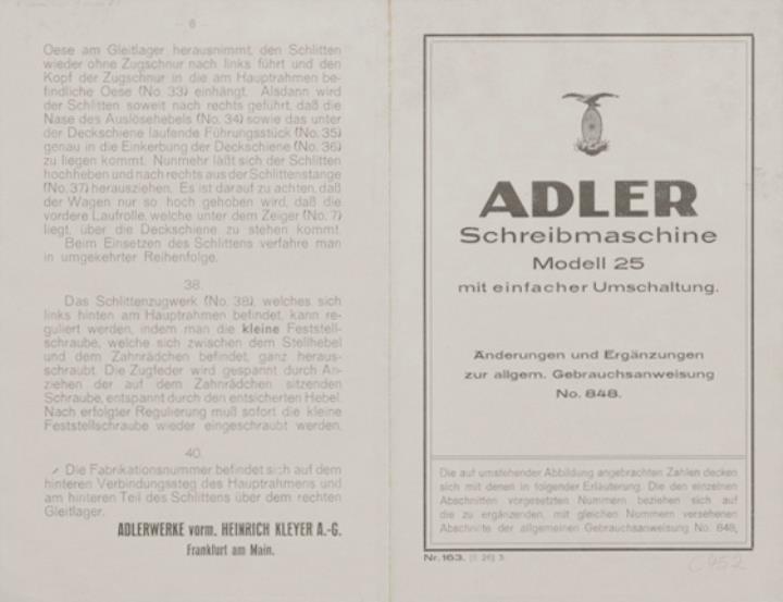 Bedienungsanleitung für die Schreibmaschine Adler 25 Nr. 163. (II 26) 3