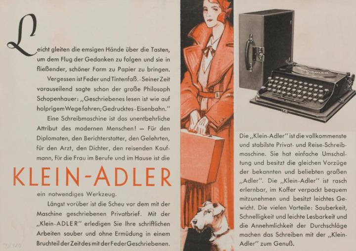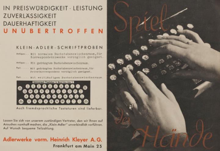 Next to literature on the history of technology, of the typewriter and the office, the Archive holds patent letters, textbooks and instruction manuals as well as historical postcards, letters, photographs and various kinds of advertising (leaflets and brochures, advertising stamps, newspaper ads, posters and signs, promotional gifts).