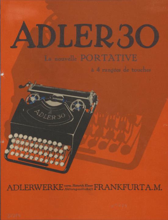 Prospekt in französischer Sprache für Schreibmaschine Adler 30 La nouvelle PORTATIVE à 4 ranges de touches