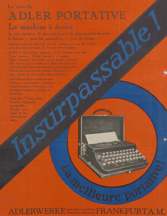 Next to literature on the history of technology, of the typewriter and the office, the Archive holds patent letters, textbooks and instruction manuals as well as historical postcards, letters, photographs and various kinds of advertising (leaflets and brochures, advertising stamps, newspaper ads, posters and signs, promotional gifts).