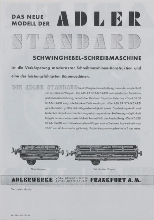 Das neue Modell der Adler Standard - Schwinghebel Schreibmaschine Nr. 836/1 (VIII. 37) 100