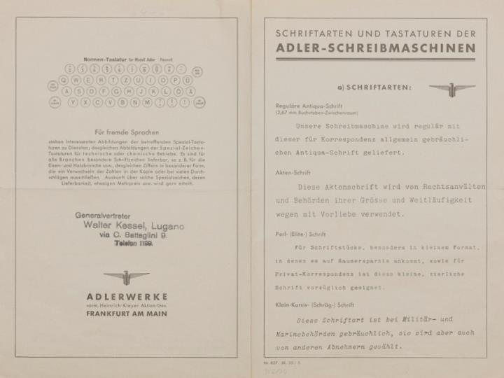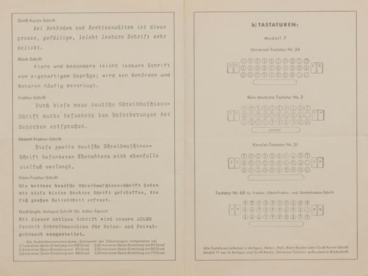 Schriftarten und Tastaturen der Adler Schreibmaschine