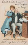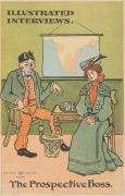 Illustrierte Postkarte; Grafik, polychrom; Reliable Series Nr. 277 Rückseite: Büroszene; Vorgesetzter und Sekretärin beim Vorstellungsgespräch Vorderseite nicht beschrieben