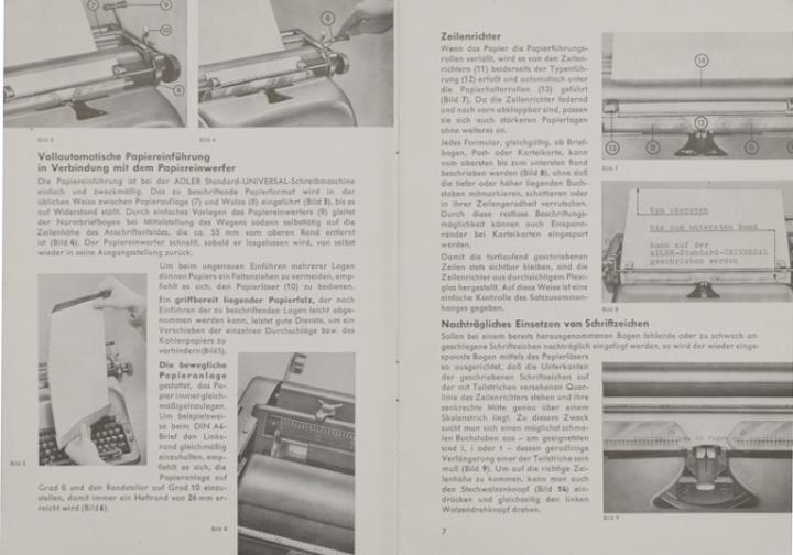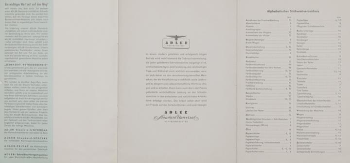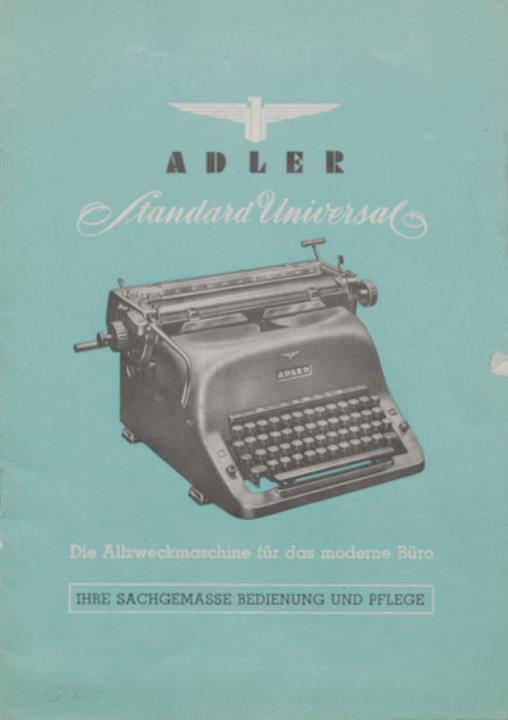 Bedienungsanleitung für eine Adler Standard Universal Schreibmaschine: Die Allzweckmaschine für das moderne Büro. Ihre sachgemässe Bedienung und Pflege. Ausgabe Lager-Nr. 8730/952