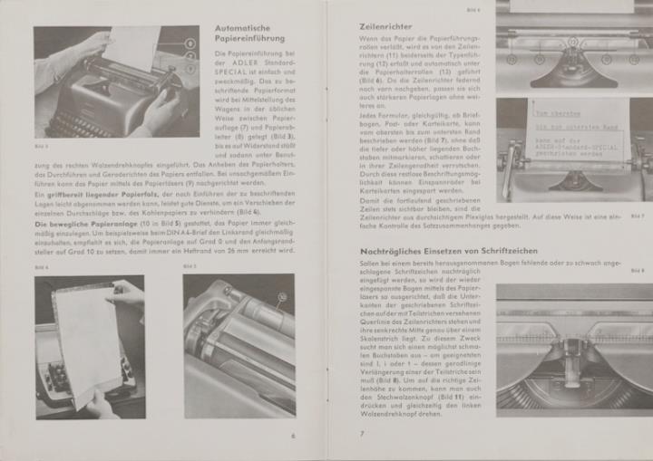 Bedienungsanleitung für eine Adler Standard Spezial Schreibmaschine: Die vollendete Korrespondenz-Maschine. Ihre sachgemässe Bedienung und Pflege.