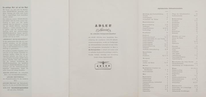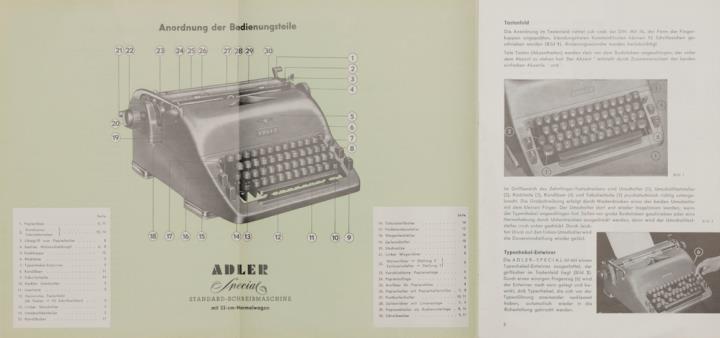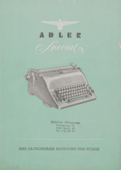 Bedienungsanleitung für eine Adler Spezial Schreibmaschine: Ihre sachgemässe Bedienung und Pflege. Lager-Nr. 8735/577 (6)