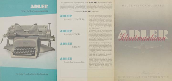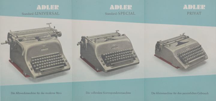 Faltprospekt für Schreibmaschine Adler Heute wie vor 50 Jahren - Adler Schreibmaschinen - im Blickpunkt der tätigen Welt. Nr. SWS 4001/51