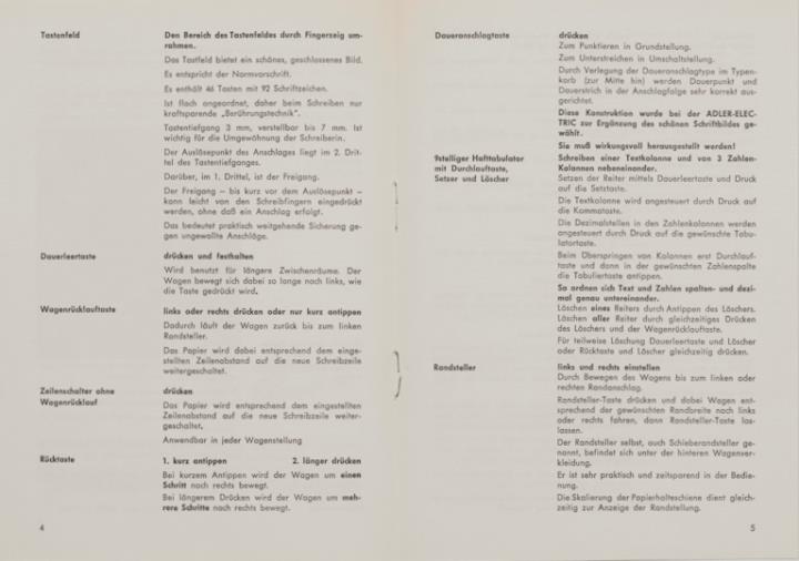 Prospekt für Schreibmaschine Adler Electric Nr. 01708/457