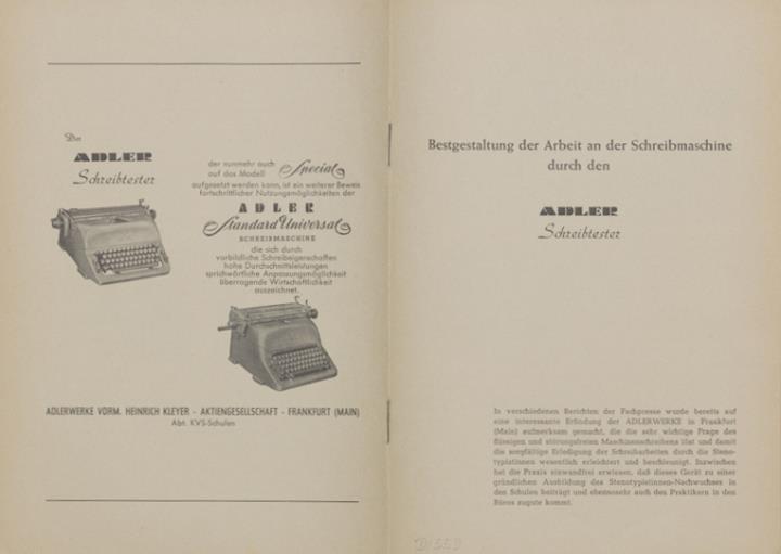 Bestgestaltung der Arbeit an der Schreibmaschine durch den Adler Schreibtester