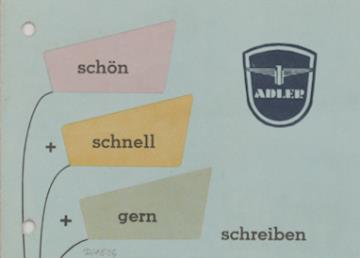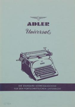 Prospekt für Schreibmaschine Adler Universal mit Randausleich Nr. 1350/1054 Datum handschriftlich vermerkt