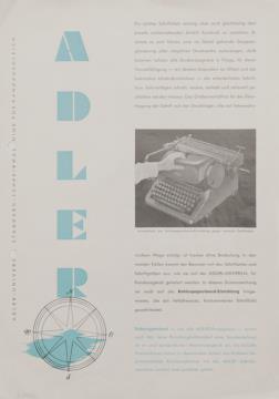 Faltprospekt für die Adler Universal Schreibmaschine - Die perfekte Büroschreibmaschine. Nr. A 155/459/6