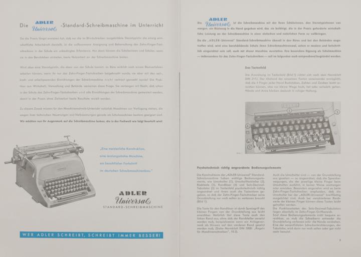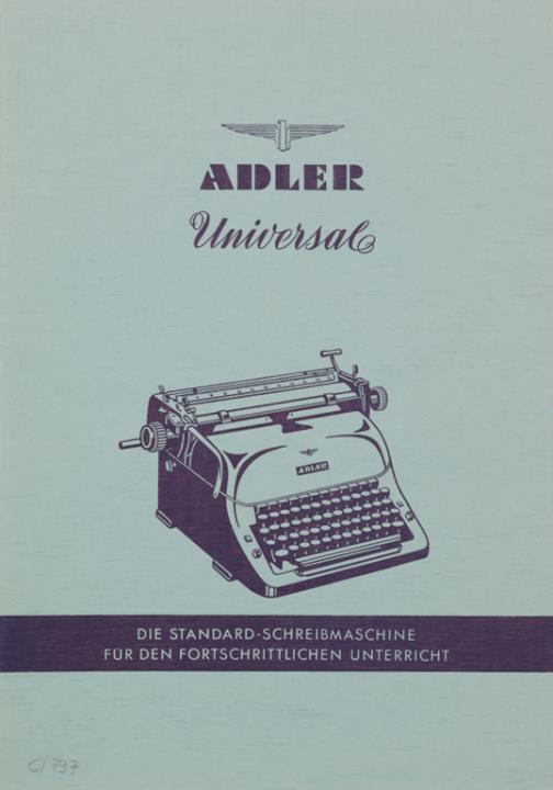 Bedienungsanleitung für Schreibmaschine Adler Universal Die Standard-Schreibmaschine für den fortschrittlichen Unterricht. Lg. Nr. 01 707/357 (6)