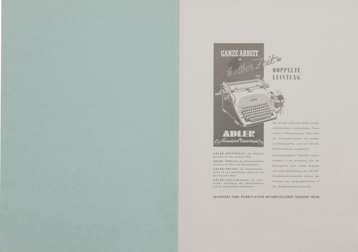Next to literature on the history of technology, of the typewriter and the office, the Archive holds patent letters, textbooks and instruction manuals as well as historical postcards, letters, photographs and various kinds of advertising (leaflets and brochures, advertising stamps, newspaper ads, posters and signs, promotional gifts).