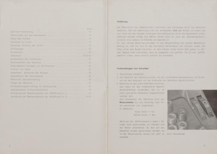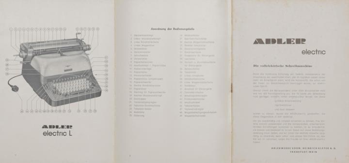 Bedienungsanleitung für eine Adler electric Schreibmaschine. Nr. A 189/959/6.