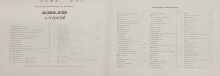 Bedienungsanleitung für eine Adler universal Schreibmaschine. Nr. A 100/961/6