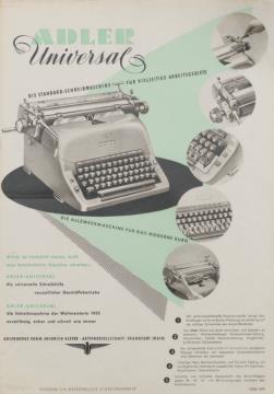 Prospekt für Schreibmaschine Adler Universal. Die Büromaschine mit dem doppelten Nutzen