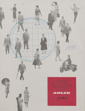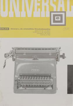 Prospekt für Schreibmaschine Adler Universal e, die wirtschaftliche Büroschreibmaschine Nr. A 106/1258/6 Datum handschriftlich vermerkt