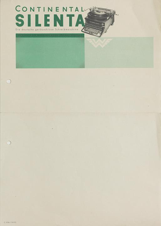 Briefbogen mit Werbedruck für Schreibmaschine Continental Silenta; nicht beschrieben