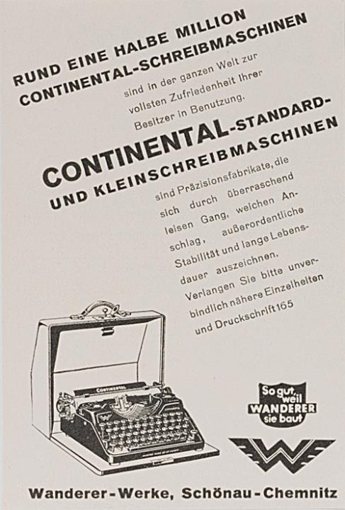 Werbeanzeige für Schreibmaschine Continental monochrom
