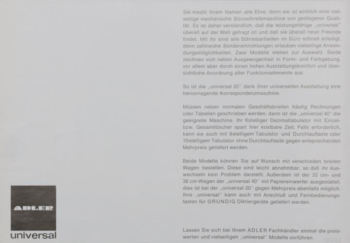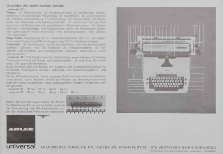 Faltprospekt für Schreibmaschine Adler Universal Nr. A 634/466/6