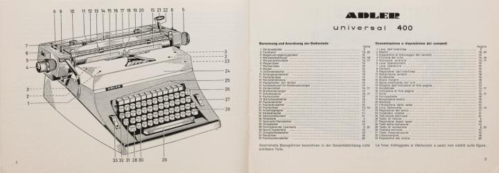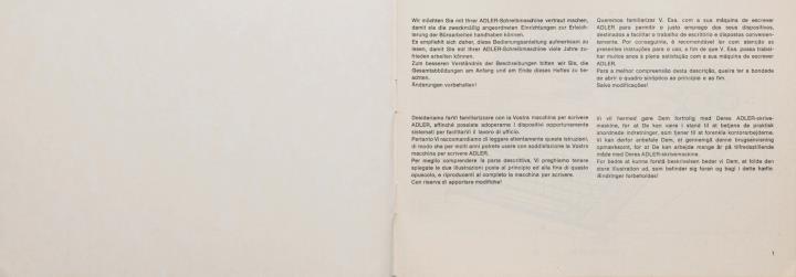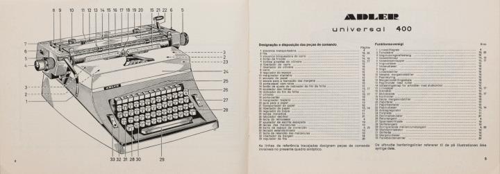 Bedienungsanleitung in vier Sprachen für Schreibmaschine Adler universal 200, 390 und 400 Nr. 131/2/281/17 d., ital., port., dän.