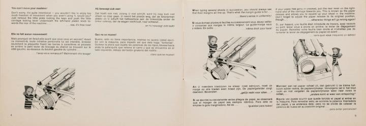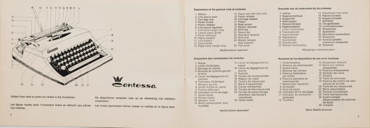 Bedienungsanleitung viersprachig für Schreibmaschine Adler contessa Nr. A 804/470/17/10. engl., franz., holl., span.