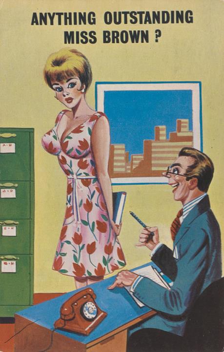 Illustrierte Postkarte; Grafik, polychrom; Nr. 10050 Rückseite: Büroszene; Sekretärin und Vorgesetzter/Mitarbeiter Vorderseite nicht beschrieben