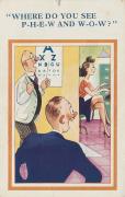 Illustrierte Postkarte; Grafik, polychrom; Nr. 5048 Rückseite: Büroszene; Arzt und Mann beim Sehtest, im Hintergrund Sekretärin mit Schreibmaschine Vorderseite nicht beschrieben
