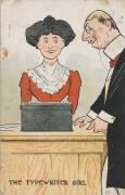 Illustrierte Postkarte; Grafik, polychrom copyright 1911 H. M. Rose Rückseite: Sekretärin mit Schreibmaschine, darunter Text in Versform Vorderseite nicht beschrieben