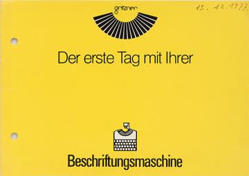 Faltprospekt für Beschriftungsmaschine Gritzner Nr. 476 PE Jahreszahl handschriftlich vermerkt
