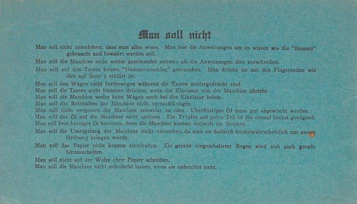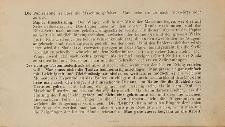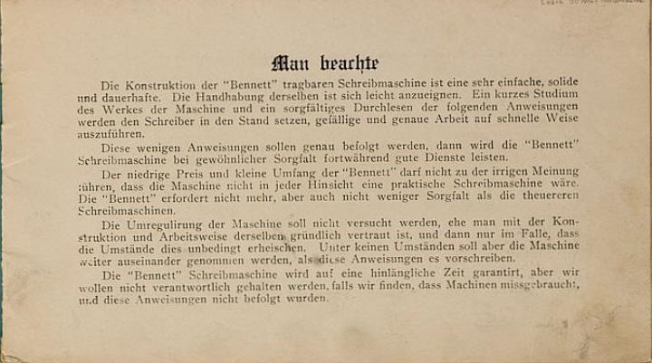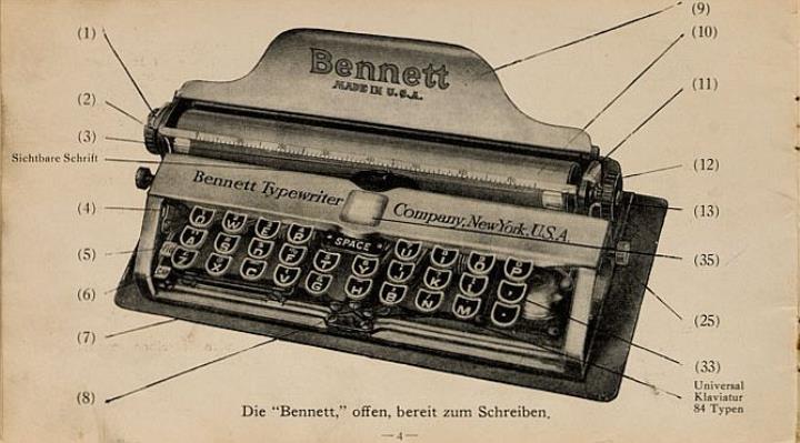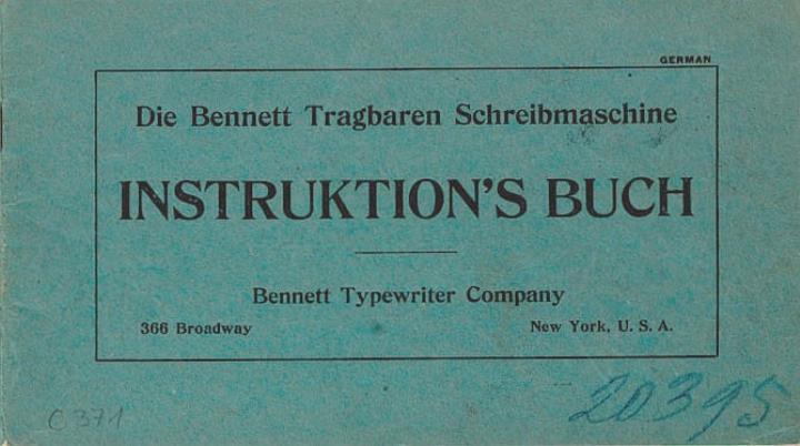 Die Bennett Tragbare Schreibmaschine Instruktion's Buch