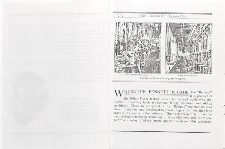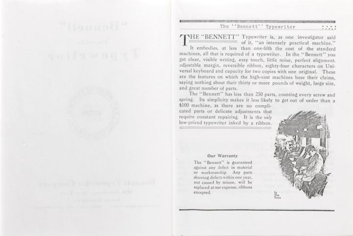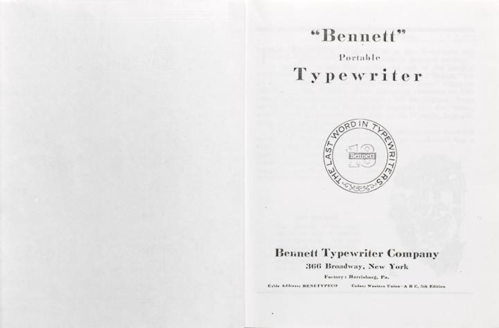 Bedienungsanleitung für Schreibmaschine Bennett The Smallest Perfect Machine made Fotokopie, zwei Exemplare (eines gebunden)