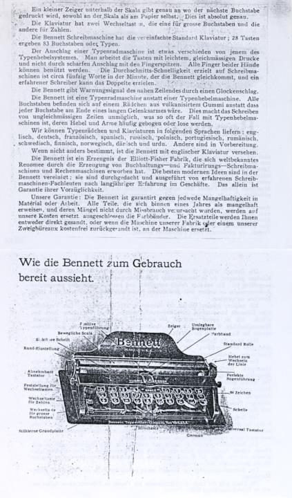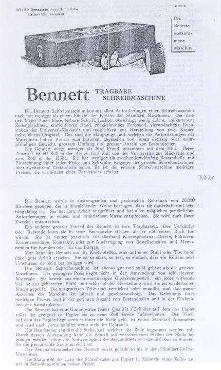 Prospekt für Schreibmaschine Bennett Fotokopie