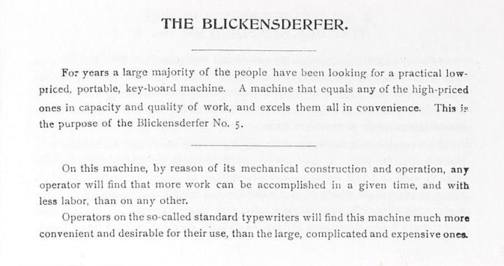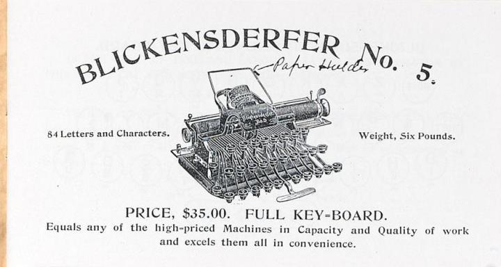 Prospekt in englischer Sprache für Schreibmaschine Blickensderfer Nr. 5