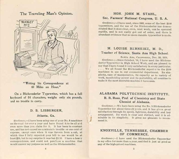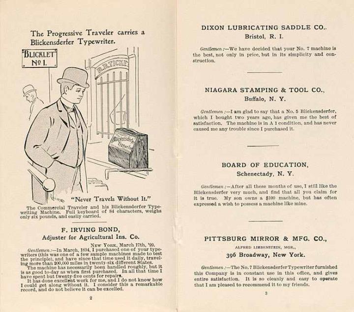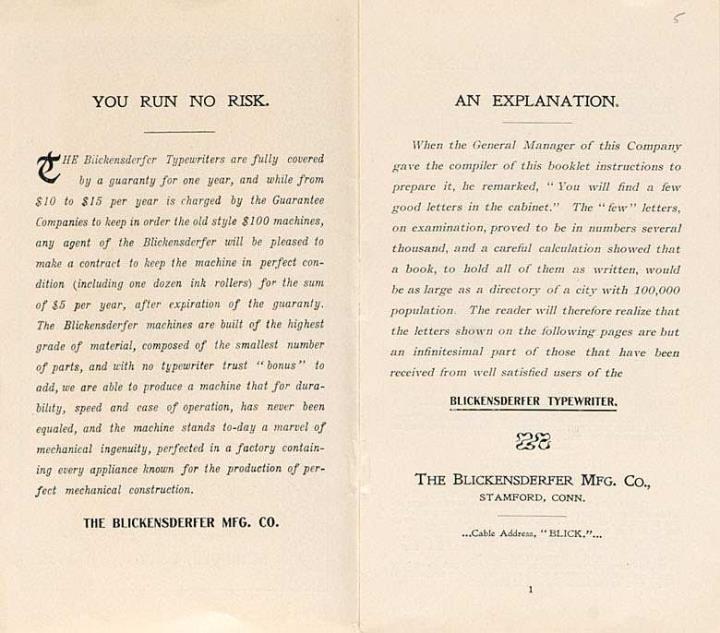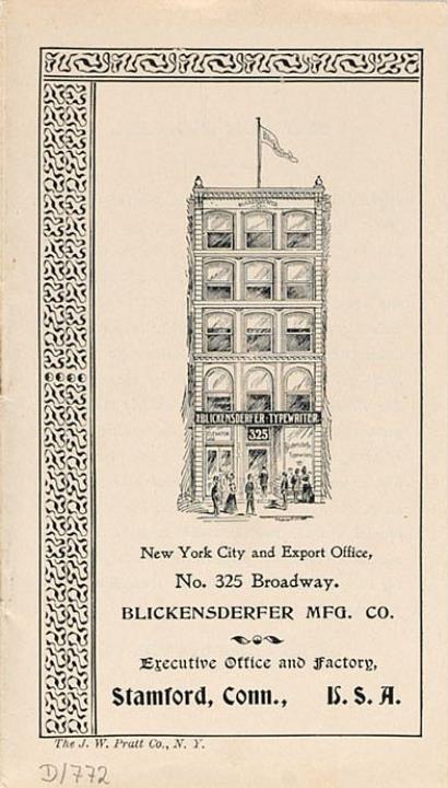 Prospekt in englischer Sprache für Schreibmaschine Blickensderfer