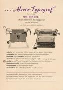 Prospekt und Bedienungsanleitung für Vervielfältigungsvorrichtung Hecto-Typograf Der einzige Universal-Schreibmaschinen-Zusatzapparat