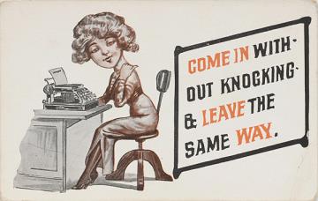 Illustrierte Postkarte; Grafik, polychrom; Nr. 278 Rückseite: Büroszene; Sekretärin mit Schreibmaschine, halb bekleidete Frau verlässt das Chefbüro Vorderseite nicht beschrieben