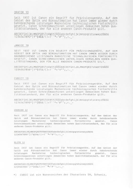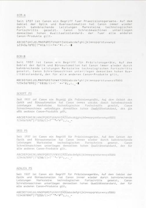 Canon Schriftmuster