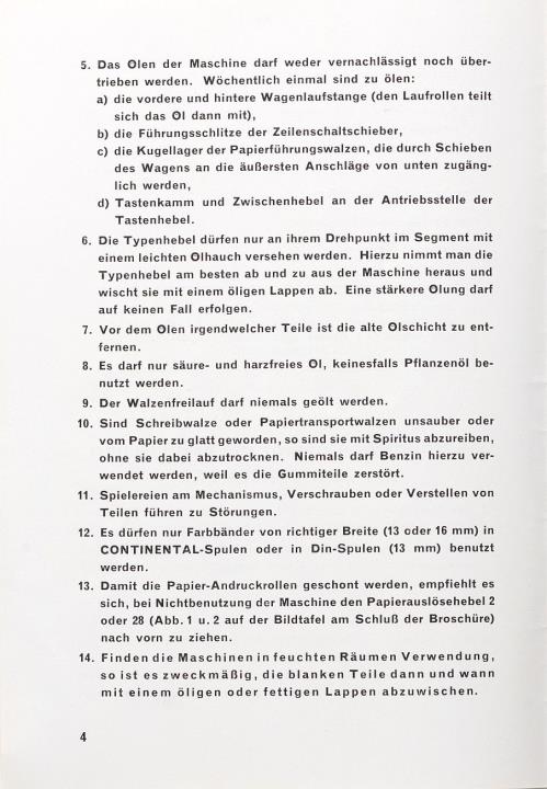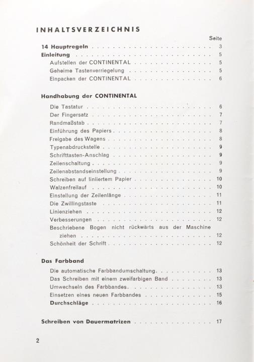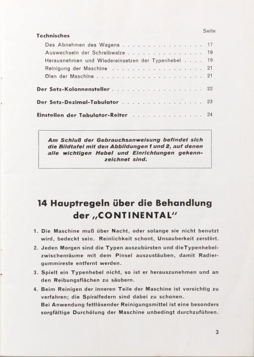 Gebrauchsanweisung für die Continental Schreibmaschine