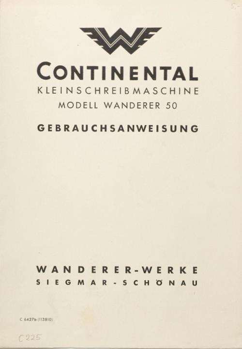 Bedienungsanleitung für Kleinschreibmaschine Continental Wanderer 50 Nr.C 6627b (113810)