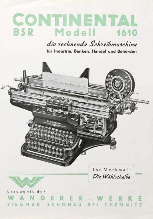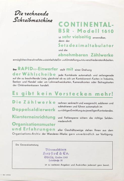 Prospekt für Schreibmaschine Continental BSR mit Rapidus-Wählscheibe die rechnende Schreibmaschine für Industrie, Banken, Handel und Behörden Nr. C3831 (93650)