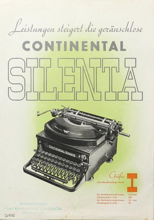Faltprospekt für Schreibmaschine Continental Silenta Nr. C 4118 (237150)