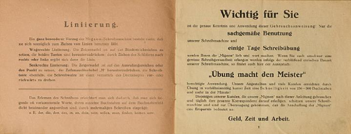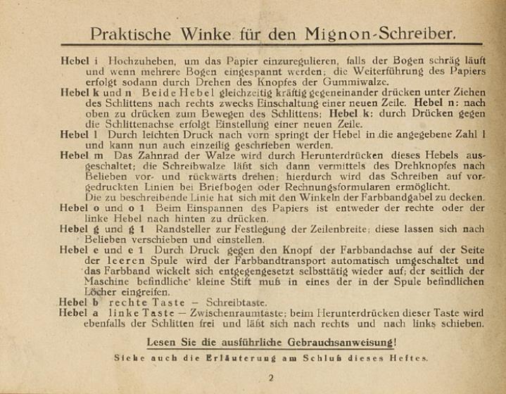 Gebrauchs-Anweisung für die Mignon-Schreibmaschine