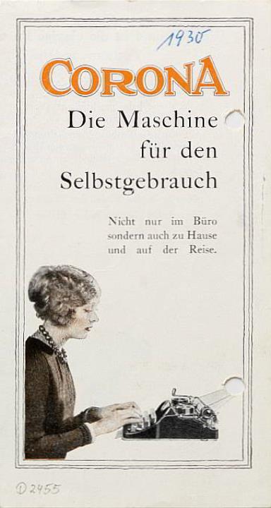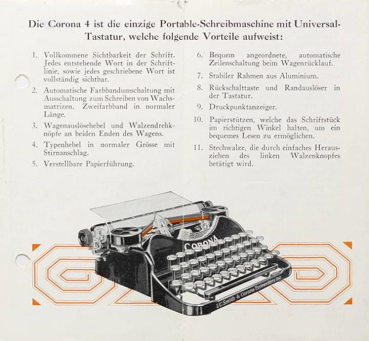 Faltprospekt für Schreibmaschine Corona 4 Nr. AI German 486 Datum handschriftlich vermerkt