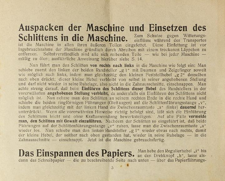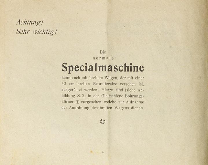 Gebrauchsanweisung für die Special Schreibmaschine
