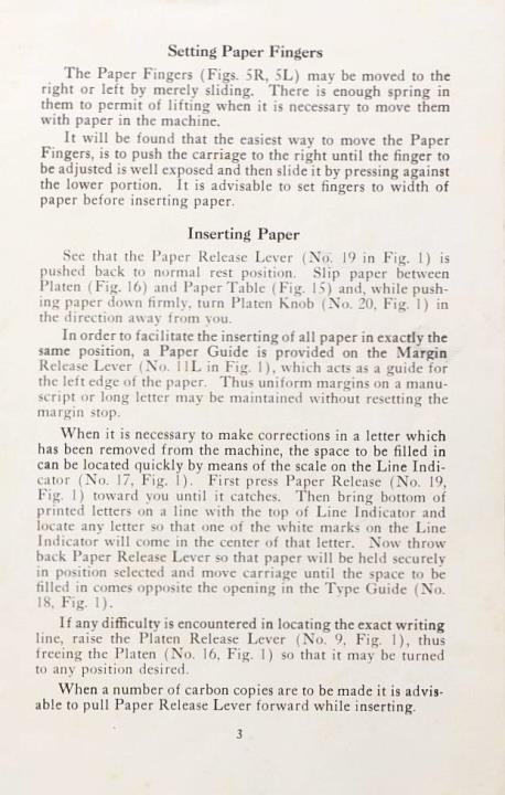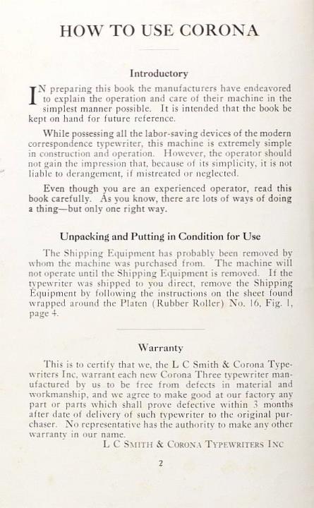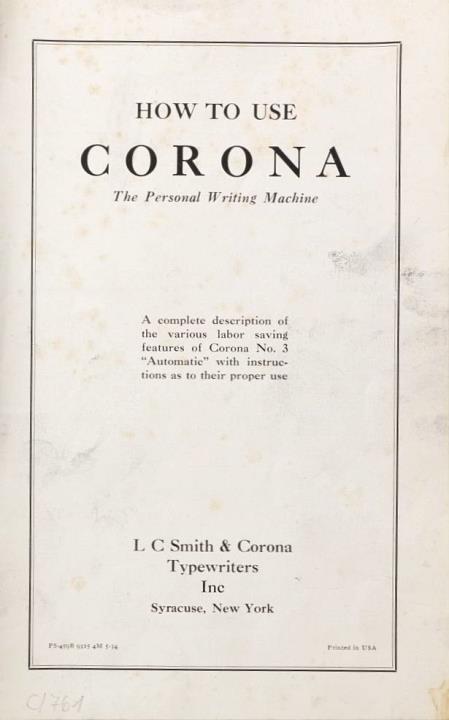 Bedienungsanleitung für Schreibmaschine Corona 3 Nr. PS-459B 9315 4 M 5-34 / PS-459B 3000 10-36, drei Exemplare (zwei fotokopiert; gebunden)