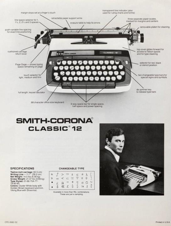 Prospekt für Schreibmaschine Smith-Corona Classic 12 Nr. CPE-0682-SE