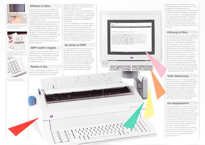 Faltprospekt für Bildschirmschreibmaschine Triumph-Adler BSS 200 Nr. WE01171301/0190/20/40